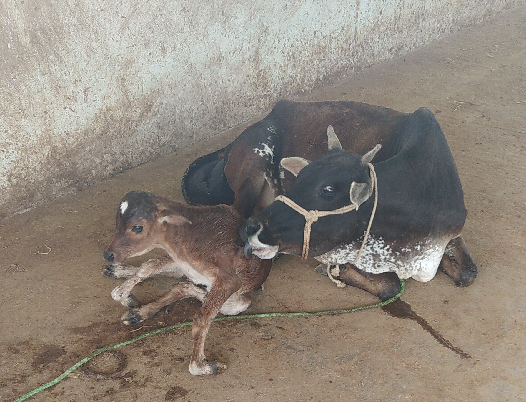 When it came her time to deliver Sakthi, she did what she would always do. We had the grace to notice how she started wandering away from the herd and towards the quietest corner of the land. There she lied down and silently gave birth to Agastya. After that we took them both to our cow-shed for shelter and food. She is always an epitome of calmness amongst the taller and quite often very expressive companions in the herd.
