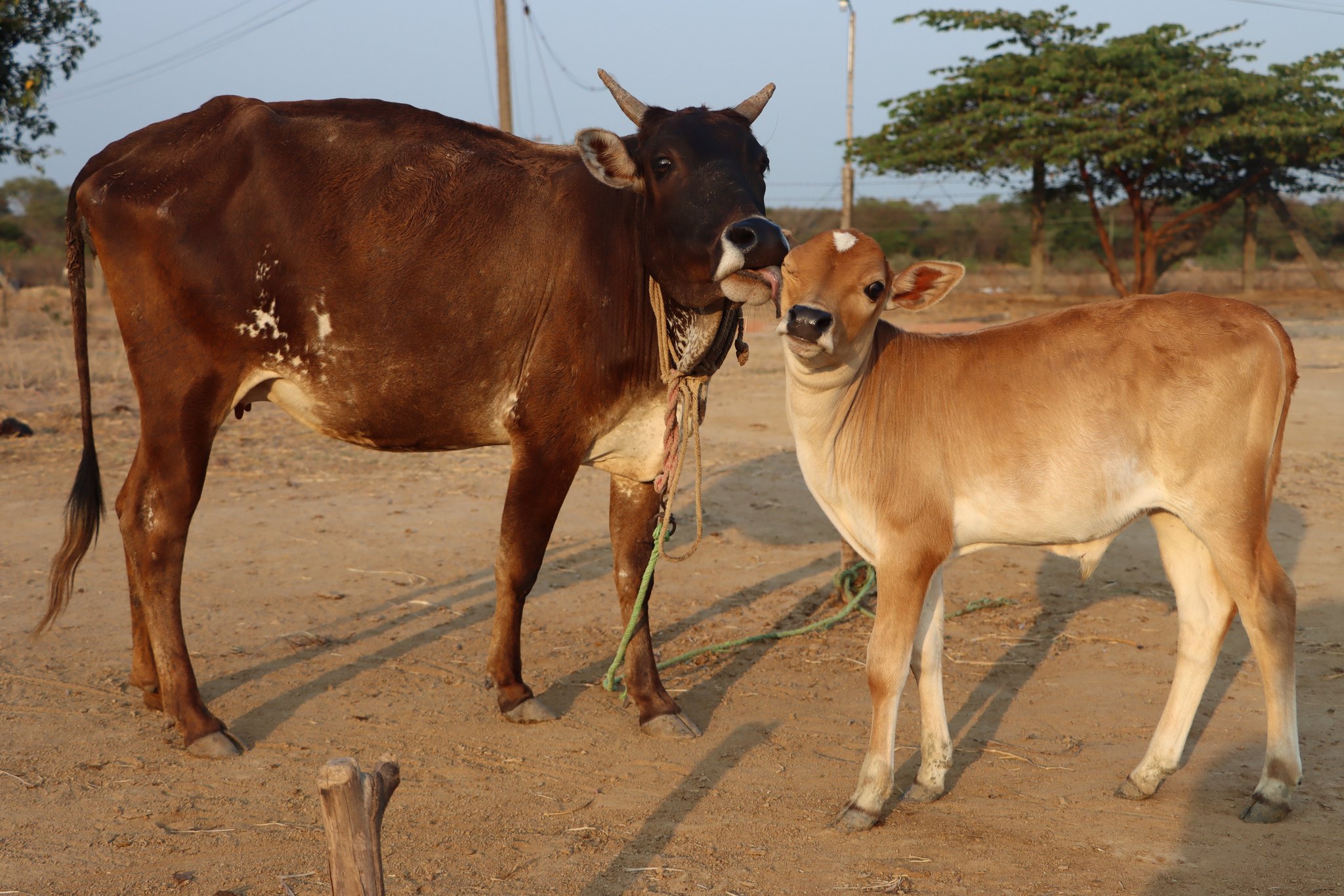 Agastya was during the spring 2021. As is the name remarkable, so was his appearance and character from the very beginning. OR maybe we were bound to see those things we attached there with the name. However, it was always a delight to see the little calf go in between fighting cows or guide a smaller calf to safety from the rush of others when fresh grass was served during the drought. He sort of expressed characteristics not seen in others of the herd. It was many a night, when we found out that little Agastya had come out with Shyama and squeezed through barbed wire to "eat out" after the others had slept. You witness these gimmicks and sooner or later you have to melt a corner of your heart to the play and the player. Even today, (autumn 2022), if we leave the gate open, the little bell on his neck will gently let us know around 10pm that it is Agastya's and Shyama's snack time.