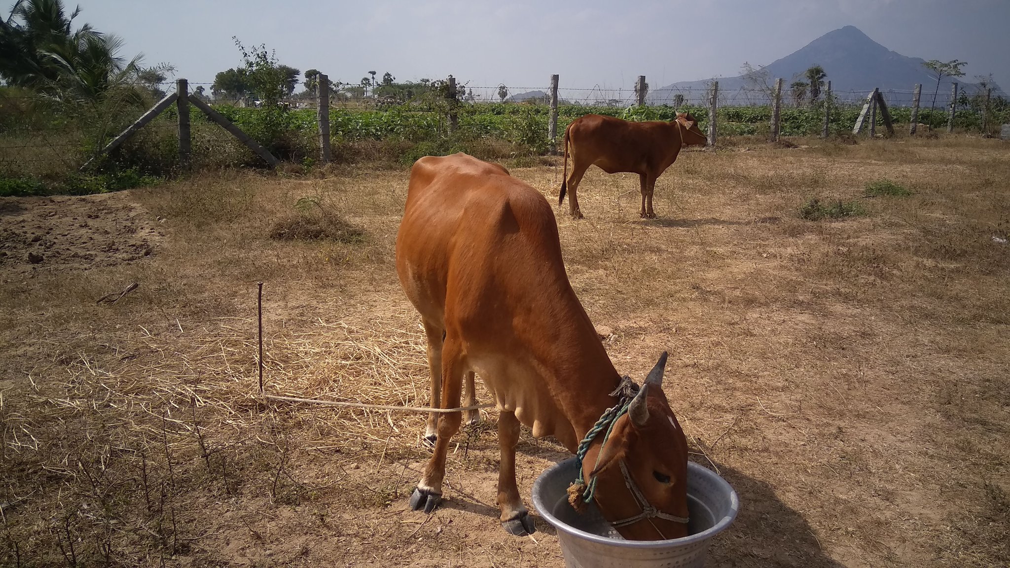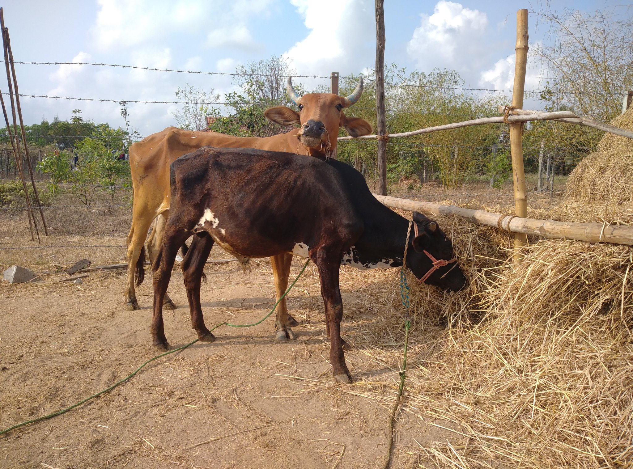 It is hard to actually tell any flamboyant stories of Bala, as he is always so cooperative, cool and easy-going. Of course, he too has a tale to tell from the earlier days. Before setting a proper fencing to separate our cows from the rest of the land with temple structures, day-care center etc. we used to have a make-shift fencing from net and bamboo poles. Now, for some reason the older cows had learned that one can't go through fences (barbed wire) and they obediently left the fence alone.