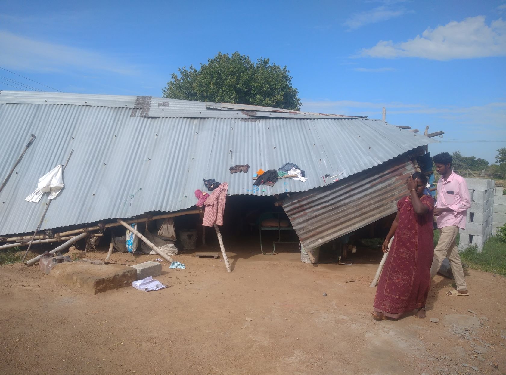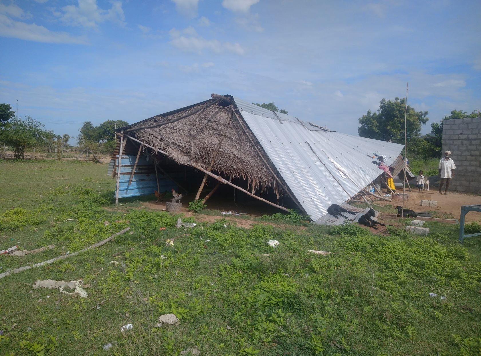 This here on the left is Sundar Ayya's family (minus the younger one of his sons). They lost their hut / dwelling one and a half months ago in a heavy storm.