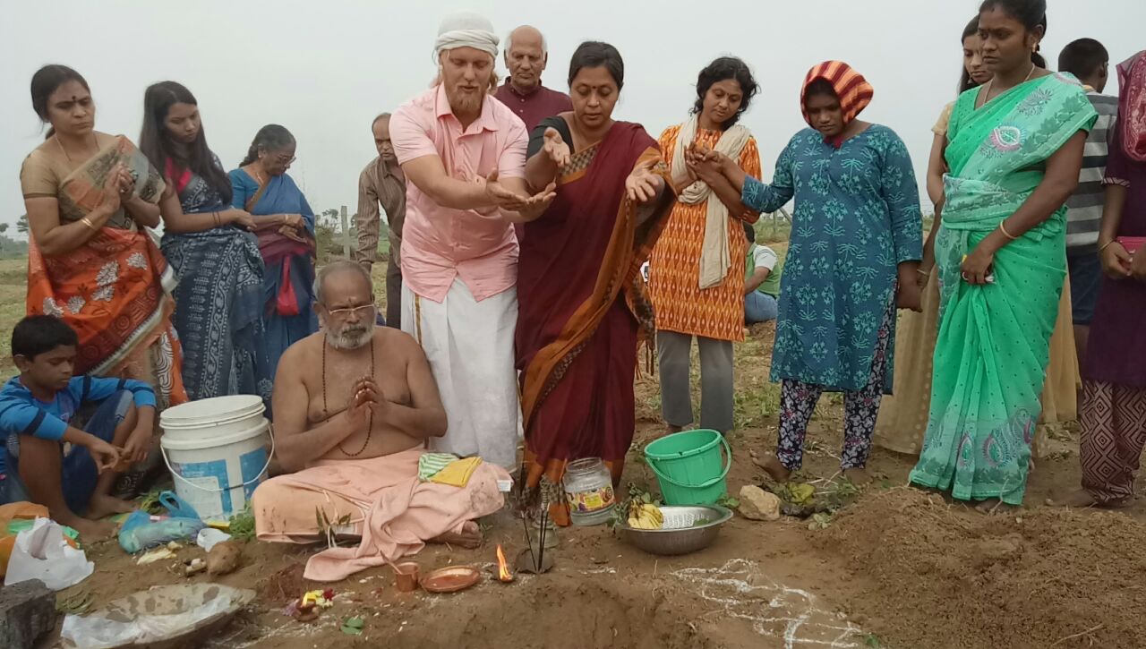 We had the great pleasure to receive Guruji Avadhoota Nadananda here in Tiruvannamalai in Divya Rasa. He himself said he feels blessed to be with the children. Guruji also conducted Bhoomi Pooja on our land.