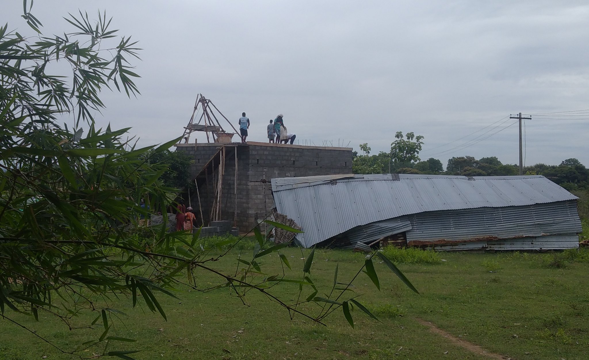 After the weather passed, they scrambled what they could and re-assembled it into a hut good for a temporary stay in good weather. Knowing this, they put their savings on the table and started constructing a simple house for themselves. However, the funds were good enough for the foundation and walls, but without a proper roof and windows and doors, they are only left with the impermanent shelter of theirs.