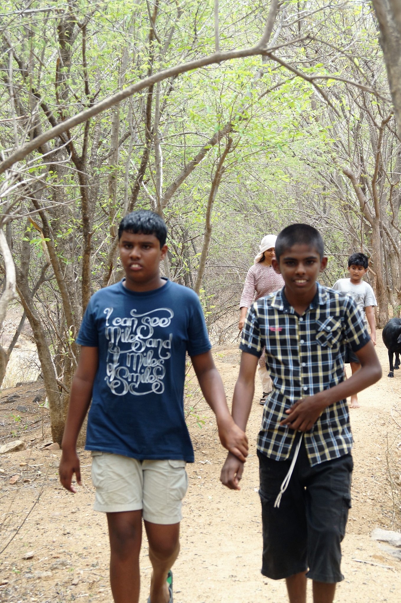 Slowly, we got into a nice routine on the new land with all kinds of construction works going on (from kitchen to classroom and cow shed to small temple etc). Children learned to take care of the cows: feed them, groom them, take them for walks. Being next to a forest, we rarely slipped an opportunity to go for long forest walks.