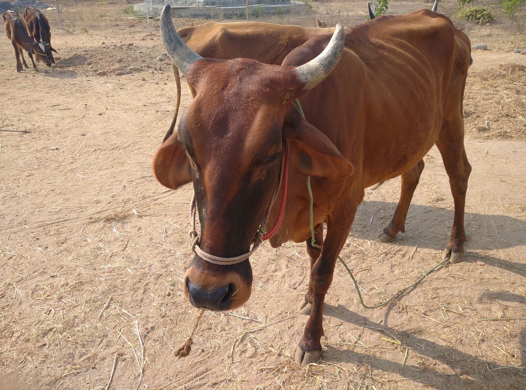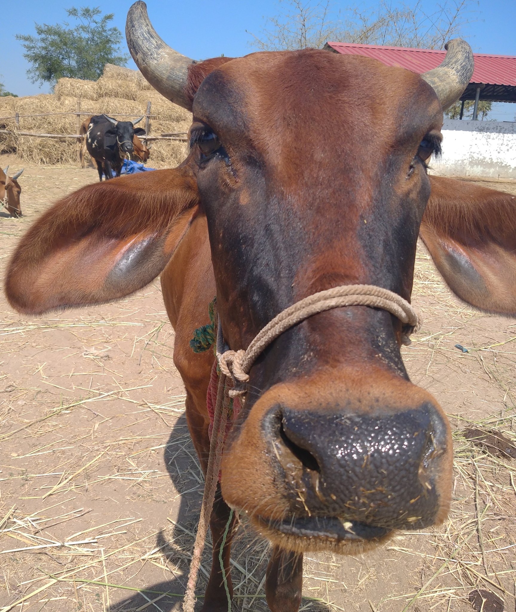 Radha was from the beginning a strider of her own paths. She would do as her head or heart told her, despite others or humans. After she grew up (she is by far the tallest cow in the herd now), she would never hesitate to use her size to her advantage. Being tall, slim, agile and fast she would happily bounce people lightly, if she was unhappy with their intentions. If she was ever shown her way from the "greener side of the fence" back to her designated space, she would jump and gallop and run like a mad cow, but she would never fail to understand and complete the demanded task.